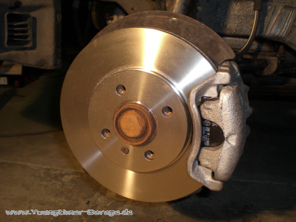 Beide Achsen erhielten neue Bremsscheiben und Bremsbeläge. Die Bremssättel wurden gereinigt und überarbeitet. An der vorderen Achse wurden die Bremsschläuche